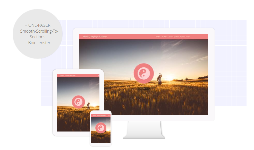 1= One Pager | Dies ist ein responsive One-Pager. Im Prinzip bedeutet es, das die Webseite nur aus einem einzigen Webdokument, also nur einer HTML-Seite besteht. Klicken Sie die Links im Menü und sehen Sie wie innerhalb einer Seite die verschiedenen Sektionen aufgerufen werden. Wichtiger Bestandteil eines One-Pagers ist das Smooth-Scroll-To-Sections sowie das Öffnen von (div-)Boxfenstern innerhalb der selben Seite für weiteren Inhalt.